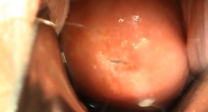 По-другому называется псевдоэрозия. Наблюдаются такие симптомы: патологические выделения обильного характера; цвет таких выделений может быть: желтый, белый или с зеленцой; выделения имеют резкий неприятный запах.
