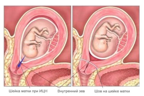 В результате того, что шейка становится короче и мягче, риск проникновения инфекций к плоду значительно возрастает, а околоплодные воды начинают постепенно подтекать. Поэтому с 14-ой по 25-ю недели шейку матки зашивают.