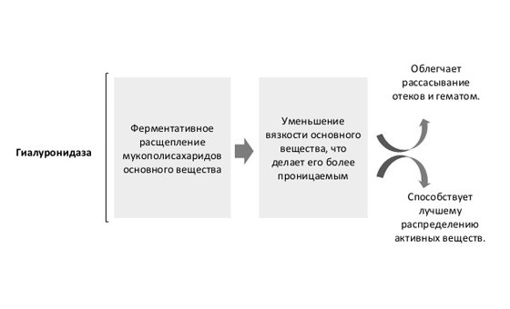 Также лекарство борется с фиброзными образованиями. Действующее вещество активно до 21 дня при температуре 37ºС. У гиалуронидазы, вырабатываемой организмом, срок действия намного короче. Она перестанет активно бороться с фиброзом уже через 24 часа.